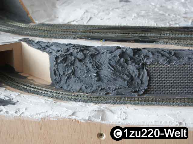 Diese wurde schon aus Gips bzw. Innenspachtel mit der Landschaft zusammen gestaltet. Um eine vorbildgerechte