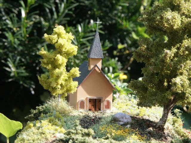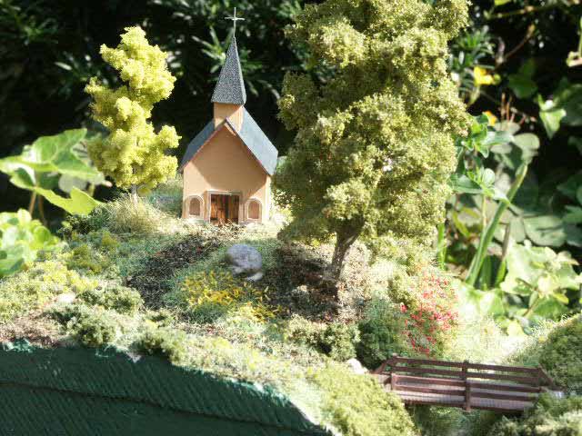 Dies ist mein erstes Diorama, welches auch als Landschaftstest dient. An diesem Modell habe ich mich einfach mal ausgetobt, mit den verschiedenen Streumitteln. Beim Misslingen wäre der Verlust an Material nicht so hoch, wie direkt an der Anlage zu probieren.