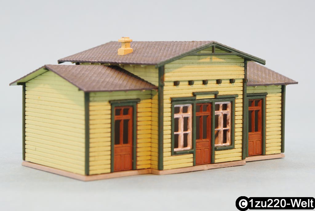 Nachdem der Schuppen so gut geklappt hat, wollte ich ein etwas anspruchsvolleres Projekt versuchen. Für die Stammtisch-Module brauchte ich eh noch einen Bahnhof, also wurde dafür ein passendes Modell gesucht und konstruiert. In meiner Pläneschublade bin ich dabei auf eine Zeichnung des Bahnhofs von "Deinste" an der Bahnstrecke Stade-Bremervörde aus dem Eisenbahn Magazin 11/1977 gestoßen. Dieser Bahnhof ist eigentlich mit einem Stellwerksvorbau und Güterschuppen verbunden, die ich aber beide für mein Modell großzügig übersehen habe.