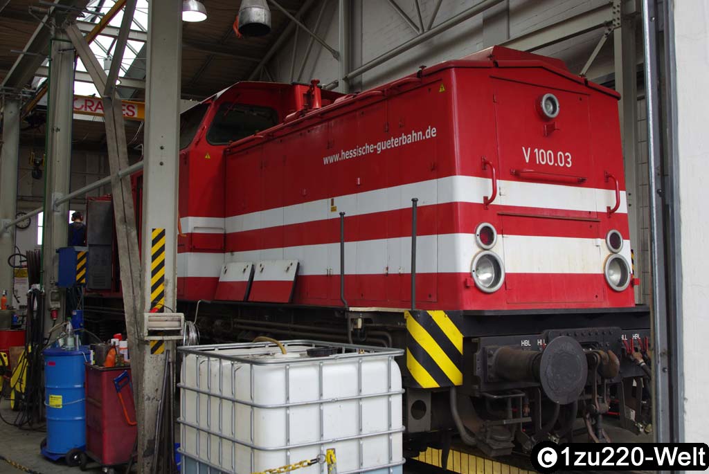 Nach kurzer Fahrt erreichten wir unser erstes Ziel: Aschaffenburg. Von der B 8 wechselten wir auf die B 26, die uns zum Stadtteil Nilkheim leitete. Hier befindet sich der Aschaffenburger Hafen. Wir fuhren an Fabrik- und Lagergebäuden vorbei, mussten den einen oder anderen LKW vorbeirollen oder rangieren lassen und erreichten nach kurzer Suche den Bahnhof und die Werkstätte der Hafenbahn Aschaffenburg. Im Lokschuppen fand Wolfgang einen freundlichen Mitarbeiter, der uns kurz die Abstellanlagen und die Werkstatt mit Drehscheibe usw. zeigte.
